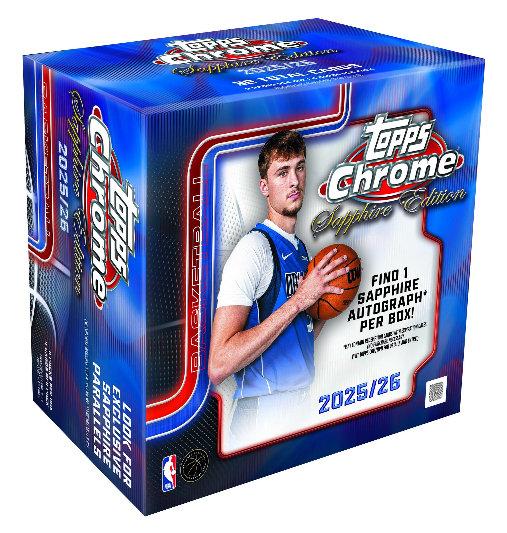 Add a premium Sapphire shine to your collection with the 2025-26 Topps Chrome Basketball Sapphire Edition Box. Known for its clean design, bold color, and exclusive Sapphire parallels, this release is a must-have for collectors chasing limited cards of top NBA stars and the newest 2025-26 rookies.