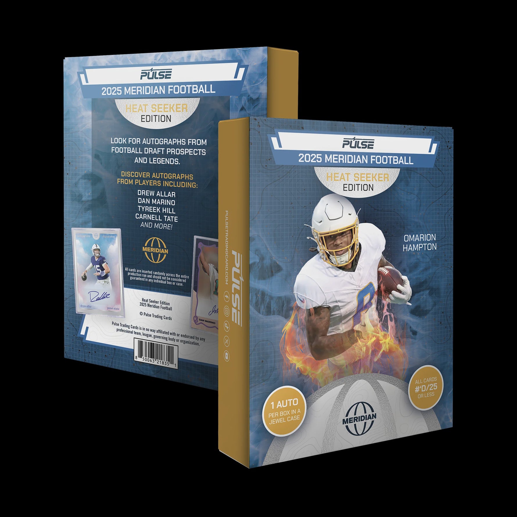 The 2025 Pulse Meridian Football Heat Seeker Edition delivers a high-energy chase product built for collectors who love guaranteed hits, premium cards, and explosive surprises. Loaded with autographs, short prints, serial-numbered parallels, and exclusive Heat Seeker inserts, this edition brings big-time football hobby excitement in every box.