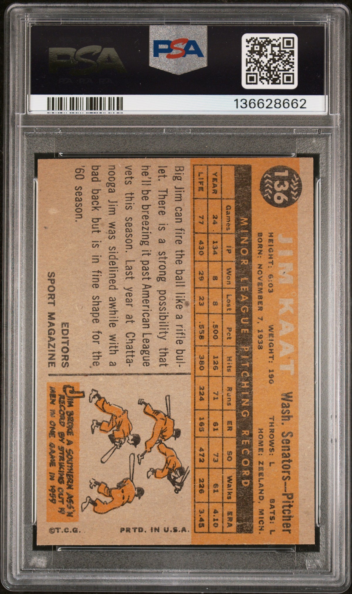 Serious collectors understand the unique appeal of the 1960 Topps Jim Kaat card. As a recognized 'Rookie Star' card, this piece is a tangible piece of baseball history, marking the early career of standout pitcher Jim Kaat. The 1960 Topps set is celebrated for its classic design, and this card is a prime example, featuring Kaat in his Washington Senators uniform. Given that Jim Kaat's reputation and popularity have endured over the decades, demand for his rookie card remains strong. This is a must-have card for any collector looking to enhance their vintage baseball card collection.