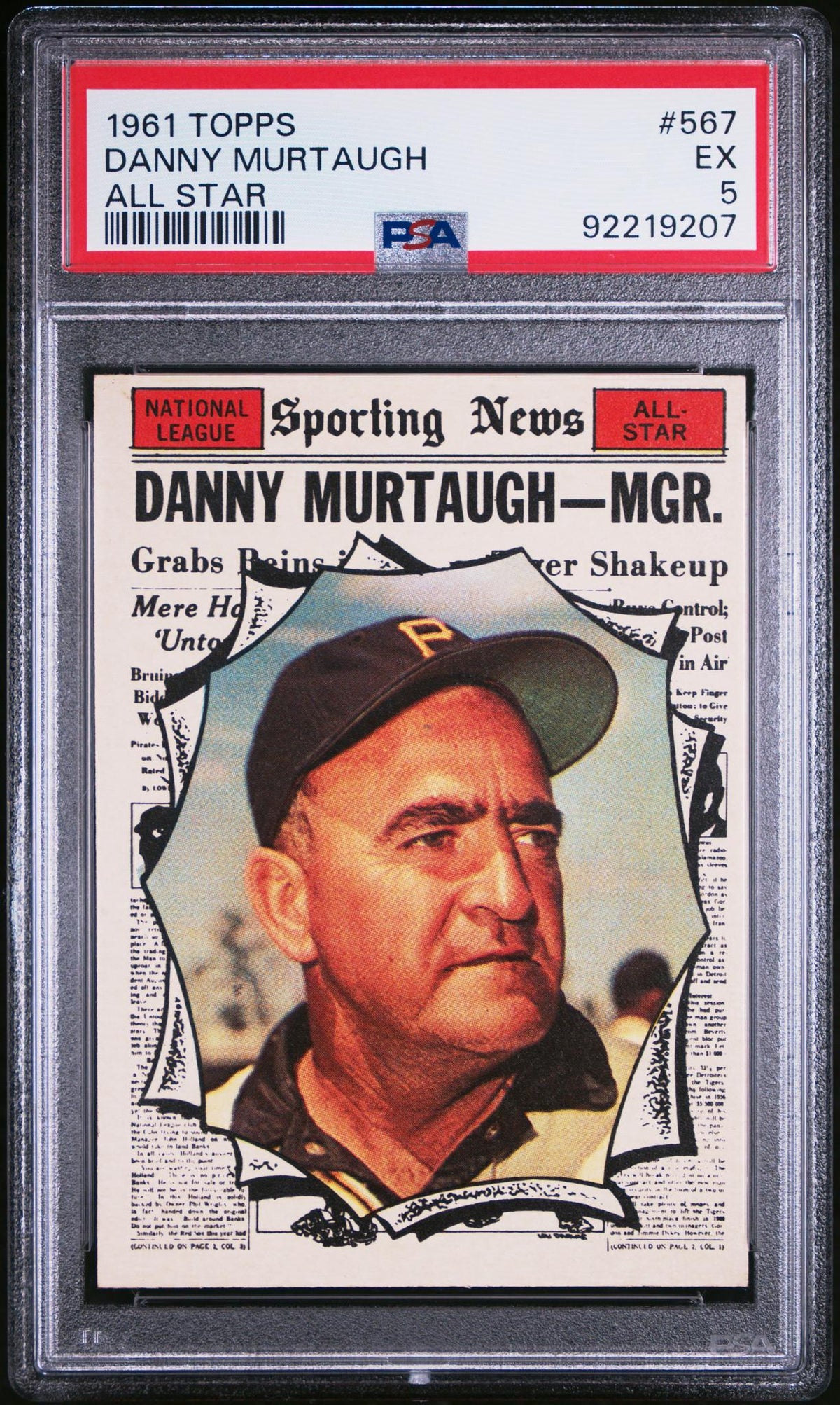 Immerse yourself in the nostalgia of vintage baseball with this captivating 1961 Topps #567 Danny Murtaugh All-Star Insert baseball card. This exquisite piece, manufactured by the renowned Topps company, is a timeless testament to Danny Murtaugh's outstanding career with the Pittsburgh Pirates in the National League.