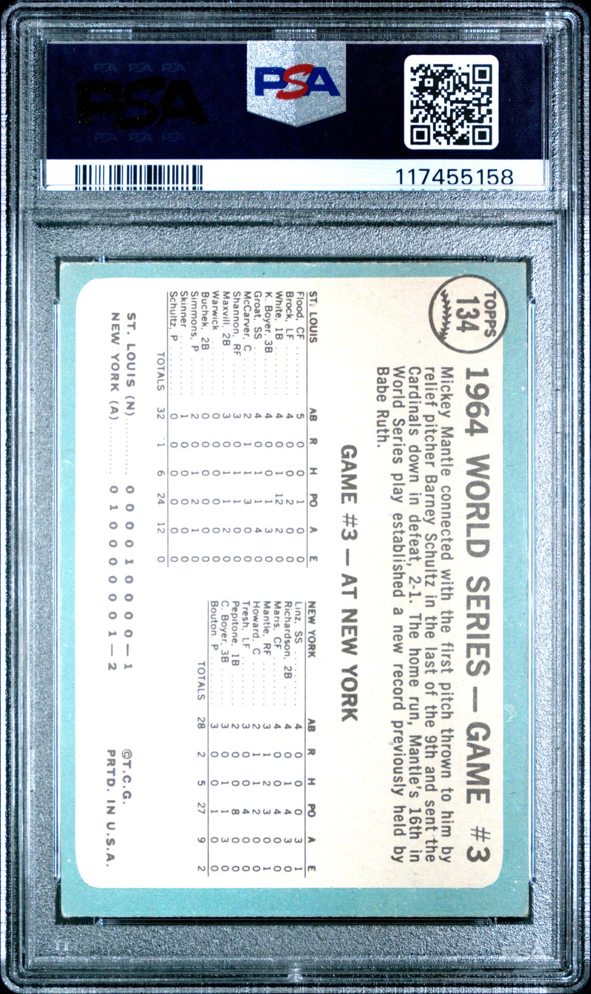 Step back in time to 1965 with this absolutely stunning Topps baseball card, featuring the legendary "Mantle's Clutch HR" from World Series Game 3. This card, #134 in the set, is a tangible piece of baseball history, capturing an iconic moment from one of the greatest players to ever grace the field - a New York Yankees superstar and MLB legend.