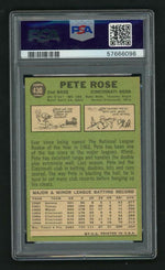 This 1967 Topps Pete Rose card is an exemplary representation of a time when Rose was at the peak of his career, making it a truly valuable collectible. The card's classic design and vintage feel make it a perfect blend of art and sport, appealing to collectors and sports fans alike.
