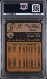 Behold, the 1973 Topps #100 Hank Aaron card, a true gem for any ardent baseball card collector. This is a card that speaks volumes for its era, featuring the legendary Hank Aaron, an icon of the Atlanta Braves. The card is professionally graded by the reputable PSA, assuring its authenticity and maintaining a solid grade of 2, reflecting its good condition.