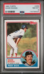 Indulge in the world of sports memorabilia with this outstanding 1983 Topps Baseball Card featuring the legendary Wade Boggs. As a member of the illustrious Red Sox, Boggs made significant contributions to the sport and this card is a fantastic tribute to his legacy. The card is not just a piece of cardboard but an embodiment of baseball history that has been preserved meticulously over the years. This card stands out in its own merit, being professionally graded by the renowned PSA. With a numeric grade of 8, the card is in Near Mint to Mint (NM-MT) condition, indicating its excellent preservation. While it may not be autographed or a rookie card, its inherent value lies in its reflection of Boggs' stellar career. The card emanates a vintage charm, reminiscent of the golden era of baseball. It is a part of the 1983 Topps Baseball card set, a collection that every baseball enthusiast would be proud to own. Whether you are a Red Sox fan, a Wade Boggs admirer, or a baseball card collector, this card is a delightful addition to your collection. It is more than just a collectible; it's a tangible representation of Boggs' incredible performance on the field. This is not just a card; it's a piece of sports history that you can own. In essence, this 1983 Topps Wade Boggs Baseball Card is a true gem. Its high grade and excellent condition speak to its value, making it an attractive and worthwhile acquisition for any sports card collector. So, bring home a piece of the baseball legend today!