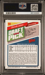 Step right up, baseball fans and card collectors! Feast your eyes on this gem of a sports card - the 1993 Topps #98 featuring none other than the legend, Derek Jeter. This is not just any card, it's a Rookie card from the coveted '1992 Draft Pick' Insert Set. This card captures the essence of one of baseball's most iconic players during his early days, adding a nostalgic touch to any collection.