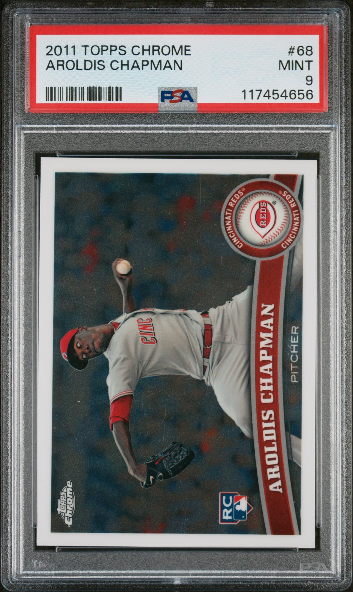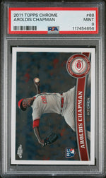 This is more than just a sports card; it's a piece of MLB history, a tribute to Aroldis Chapman's exceptional rookie year with the Cincinnati Reds. Whether you're a fan of the Reds, a follower of Chapman's impressive career, or a collector of high-grade sports cards, this is a chance to own a piece of that legacy.