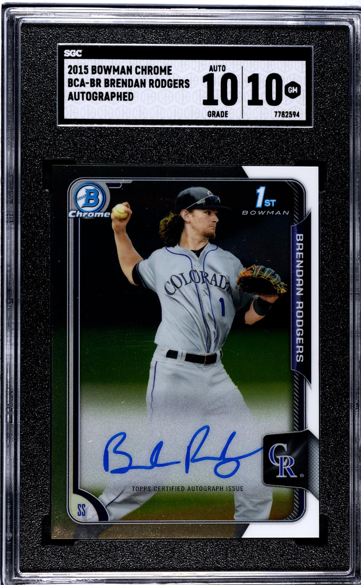 Experience the thrill of owning a piece of baseball history with this exceptional Brendan Rodgers 2015 Bowman Chrome card. This is not just a card - it is an autographed rookie card, making it a must-have for any serious collector.