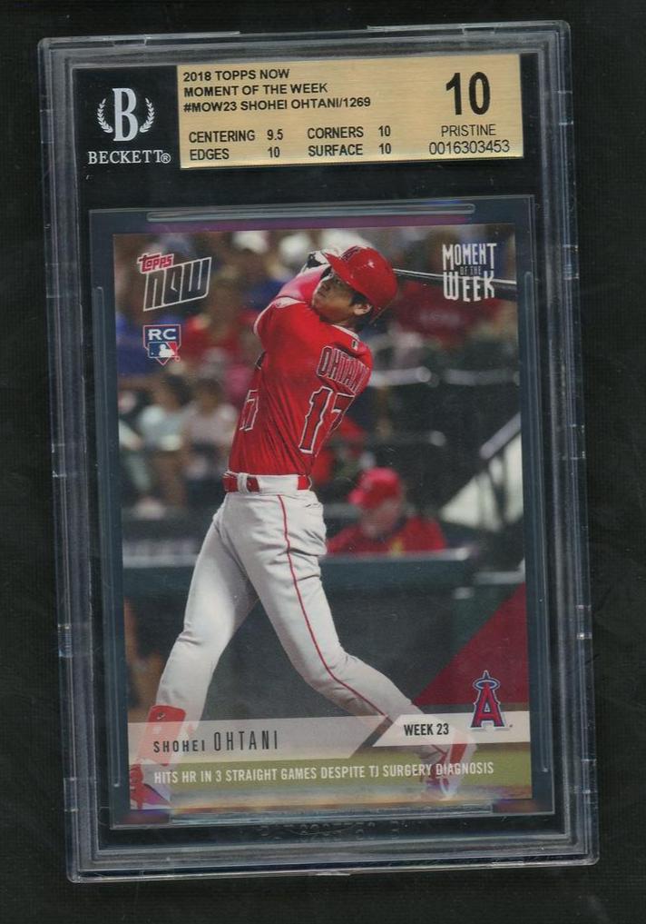 Discover the pinnacle of sports card collecting with this exceptional 2018 Topps Now #1269 Shohei Ohtani Rookie Card. Graded a perfect BGS 10, this card encapsulates the very moment the sports world turned its eyes to a rising star.