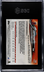 This card is not just a piece of cardboard, but a slice of baseball history, chronicling the journey of a player who has left an indelible mark on the sport. It is professionally graded by the respected SGC, assuring you of its authenticity and condition. The card boasts a numeric grade of '9', indicating a 'Mint' condition, a testament to its impeccable preservation.