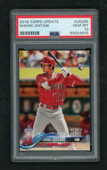Feast your eyes on this spectacular 2018 Topps Update US285 Shohei Ohtani Rookie Card! Manufactured by industry leader Topps, this card is a stunning representation of the Angels' superstar player, Shohei Ohtani. This is not just an ordinary card, it's a professionally graded gem by the prestigious PSA, with a perfect numeric grade of 10, classified as GEM MT. This card is a true testament to Ohtani's early success in the MLB, capturing the essence of his rookie year in an absolute pristine condition.