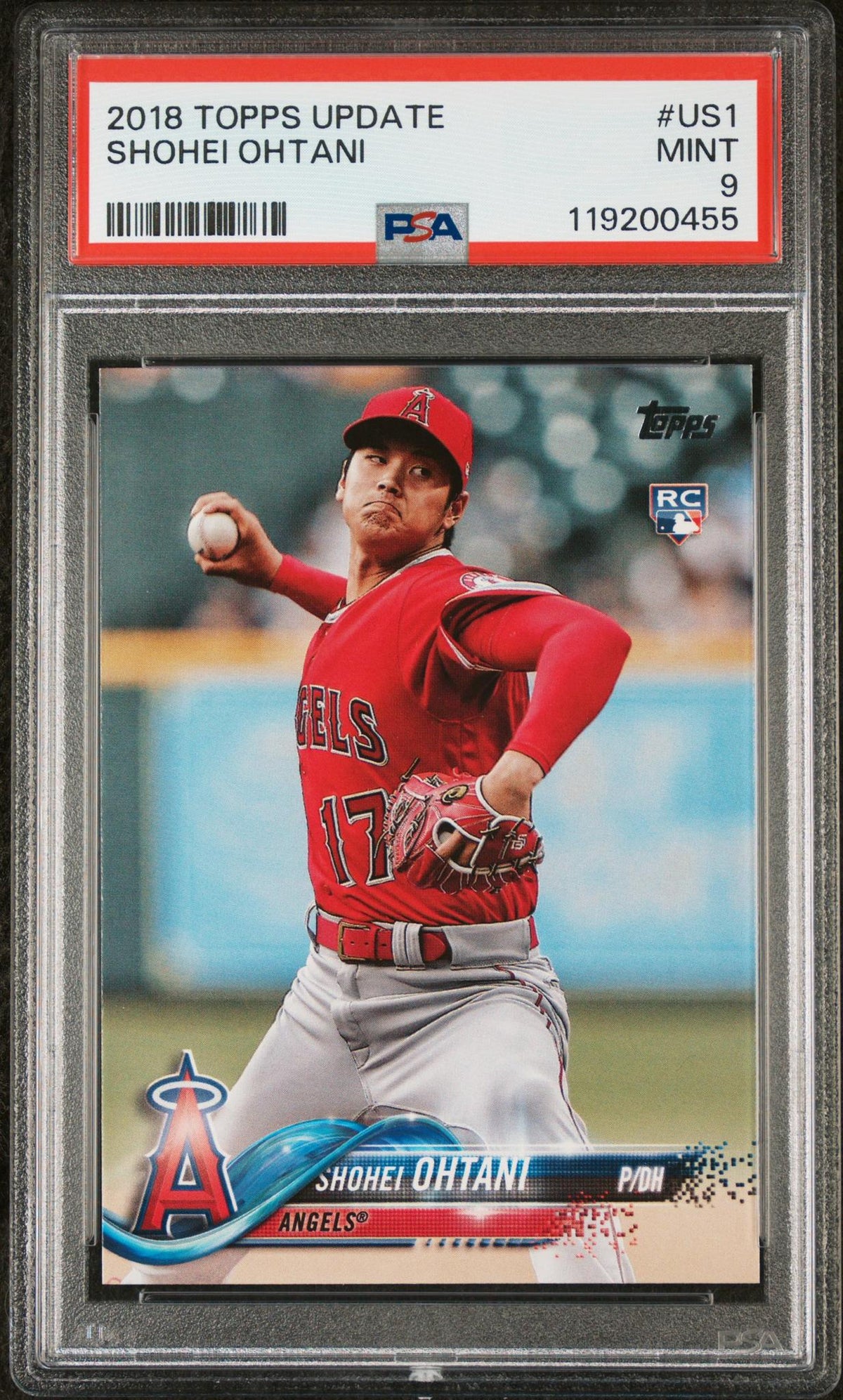 Immerse yourself in the baseball fever with this phenomenal 2018 Topps Update US1 Shohei Ohtani Rookie Card. This stunning piece, professionally graded as PSA Mint 9, stands as a testament to the remarkable talents of Shohei Ohtani, one of MLB's brightest stars. This card, manufactured by the iconic Topps, not only highlights Ohtani's outstanding skills but also represents the highest standards of collectible sports cards.