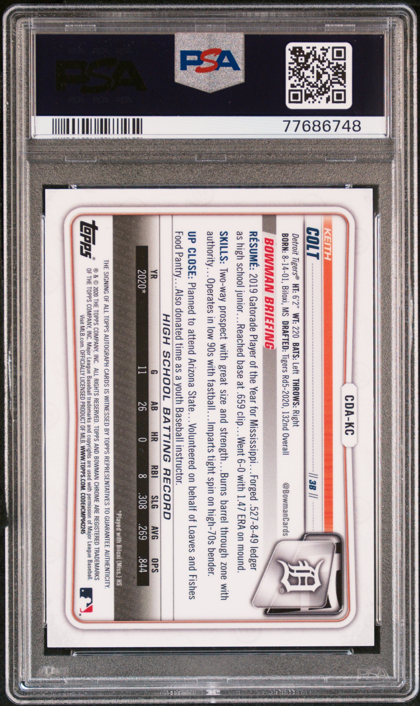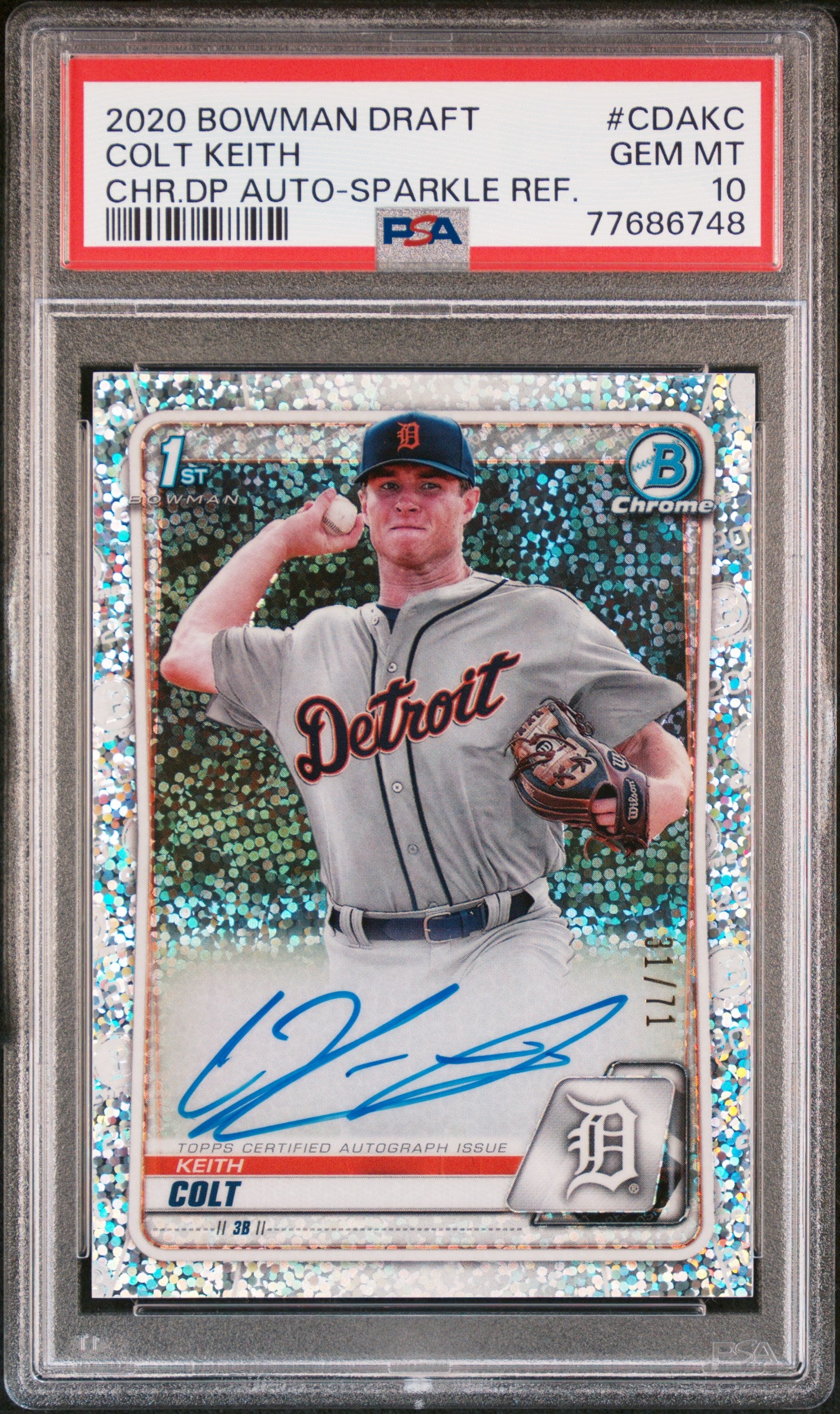 Whether you're an avid Keith Colt fan, a Bowman Chrome Draft enthusiast, or a collector seeking to add a unique sports card to your collection, this is not a chance to be missed. This 2020 Bowman Chrome Draft Autographs Sparkle Refractor Keith Colt /71 PSA 10 card is the epitome of sports card magnificence. It's not just a card, it's a treasure.