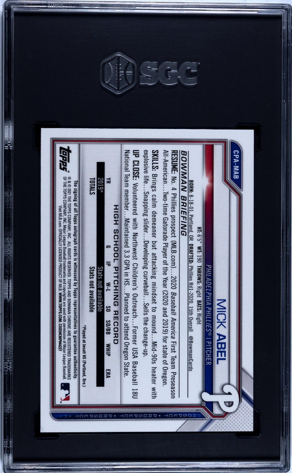 Whether you're a dedicated collector, a Philadelphia Phillies fan, or someone who appreciates the craftsmanship of baseball cards, this 2021 Mick Abel Bowman Chrome card is an investment that will bring joy and value in equal measure. Don't miss out on the chance to add this remarkable piece to your collection.