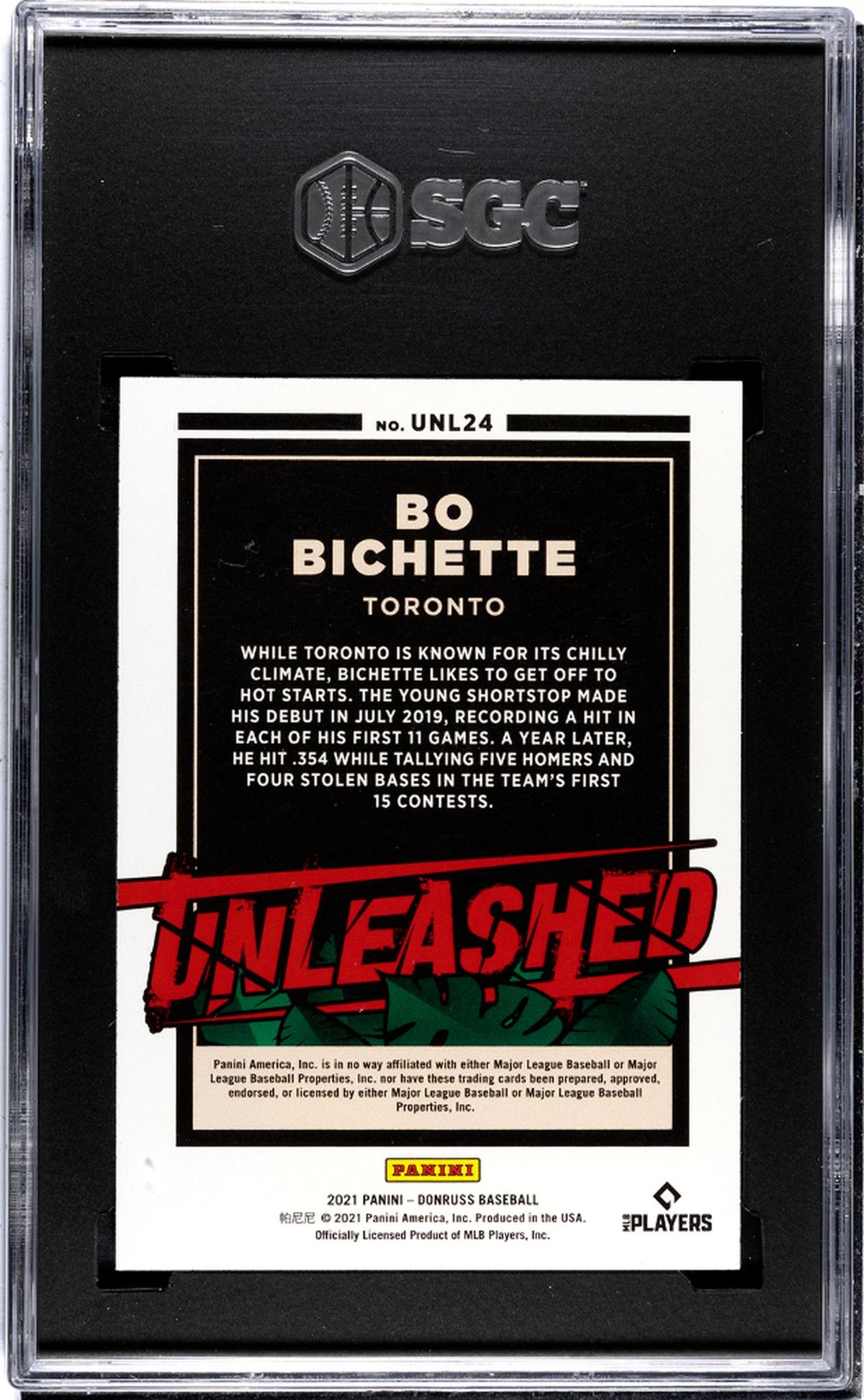 2021 Donruss #UNL24 Bo Bichette Unleashed Vector SGC 9.5
