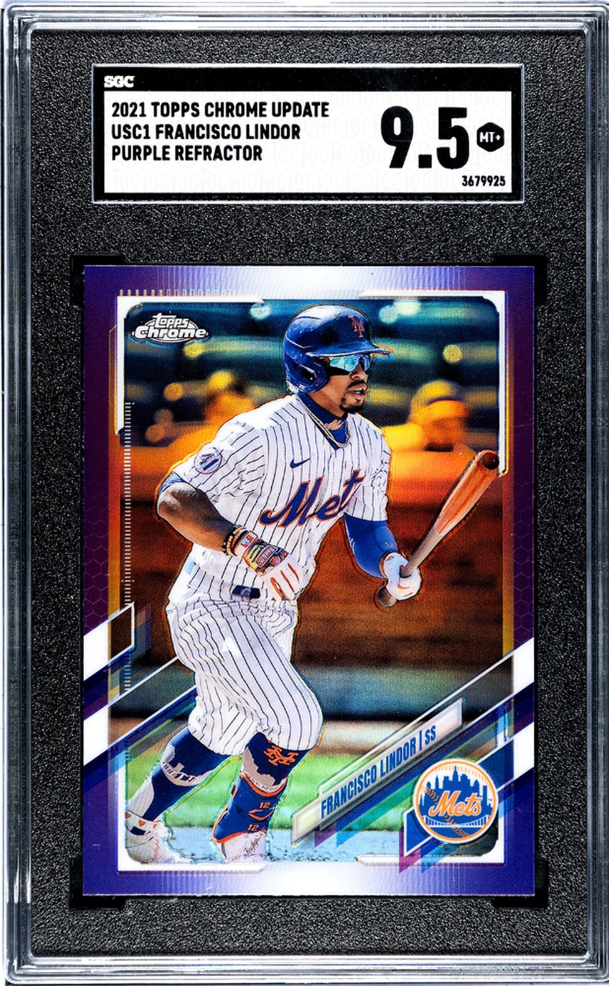 Please note that this card is not autographed, nor is it a rookie card. Despite that, its fantastic grade, unique Purple Refractor design, and the fact that it features the talented Francisco Lindor makes it a must-have item for any serious collector or a Mets fan.