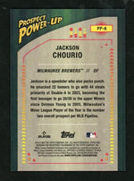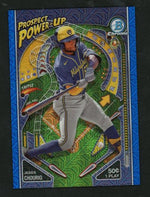 Showcasing a vibrant design that captures the dynamic energy of baseball, this card is a testament to the craftsmanship and quality that Bowman Chrome is famous for. The card, numbered PP-6, is part of the coveted 'Prospect Power-Up' set, signifying its significance and value within the sports card community.