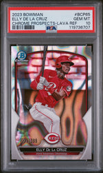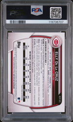 Adding to its allure, this Elly De La Cruz card has been professionally graded by PSA, the industry leader in sports card grading. With a numeric grade of 10, this card has been classified as 'Gem Mint', indicating its premium condition and superior quality. Whether you're a collector seeking to enhance your collection, a Cincinnati Reds fan, or an admirer of De La Cruz, this card is a must-have.