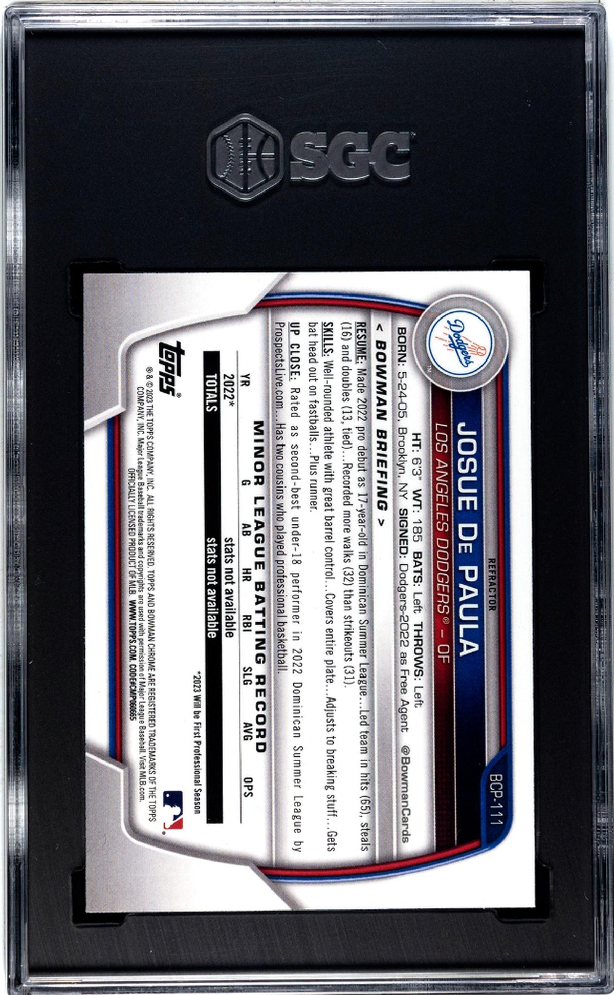 In summary, the 2023 Bowman BCP-111 Josue De Paula card is a truly remarkable piece that combines stunning visuals, high-quality manufacturing, and the significant milestone of a promising player's rookie year. This card is not just a piece of sports memorabilia, it's a piece of baseball history that you can own. Don't miss out on the opportunity to add this gem to your collection!