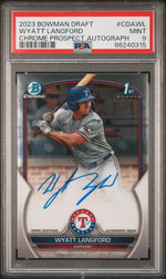 Immerse yourself in the world of baseball with this exquisite 2023 Bowman CDA-WL Wyatt Langford card. This unique piece is brought to you by the renowned manufacturer, Topps, and is a part of their prestigious 'Bowman Chrome Prospect' set.