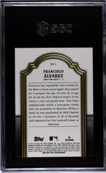 What sets this card apart is its pristine condition. It has been professionally graded by SGC and received a staggering numeric grade of 9, qualifying it as 'Mint.' An accolade not many cards can boast of, this exceptional grade demonstrates the immaculate state of the card, preserving the brilliance of Alvarez's rookie year.
