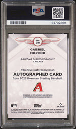 This card isn't just a collectible, it's a testament to Moreno's rookie year in the MLB, capturing the beginning of what is sure to be a thrilling career. The card's authenticity is beyond question, as it has been professionally graded by the trusted PSA Grading Company. It proudly carries a numeric grade of 10, indicating its pristine, GEM MT condition.
