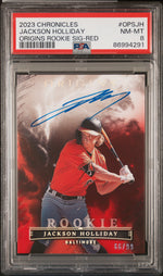 The key features of this card, including its autograph, serial number, rookie status, red parallel design, and PSA grading, make it an extraordinary addition to any sports card collection. Whether you're a die-hard Jackson Holliday fan, a Baltimore team supporter or a collector with an eye for potential value, this card is a must-have.