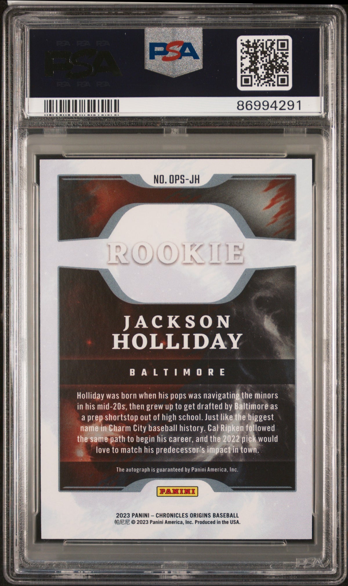 In the realm of baseball card collecting, the 2023 Chronicles OPS-JH Jackson Holliday card stands out as a shining beacon. Seize the opportunity to own this remarkable piece of sports history and add a touch of majesty to your collection today.
