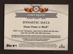 Feast your eyes on this spectacular 2023 Topps C. Keith baseball card from the esteemed Dynastic Data insert set. This card is a true gem for any serious collector, boasting an autograph from the sensational player himself. But that's not all, the card is serial numbered 3/5, making it a rare find indeed.