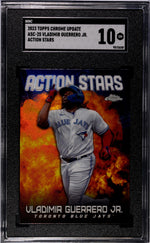 Step into the world of baseball with this stunning 2023 Topps Chrome ASC-25 Vladimir Guerrero Jr. card. As a top-notch product from the renowned manufacturer, Topps, this card is a must-have for any serious collector. It comes from the Action Stars Insert Set, adding an extra layer of exclusivity to your collection.