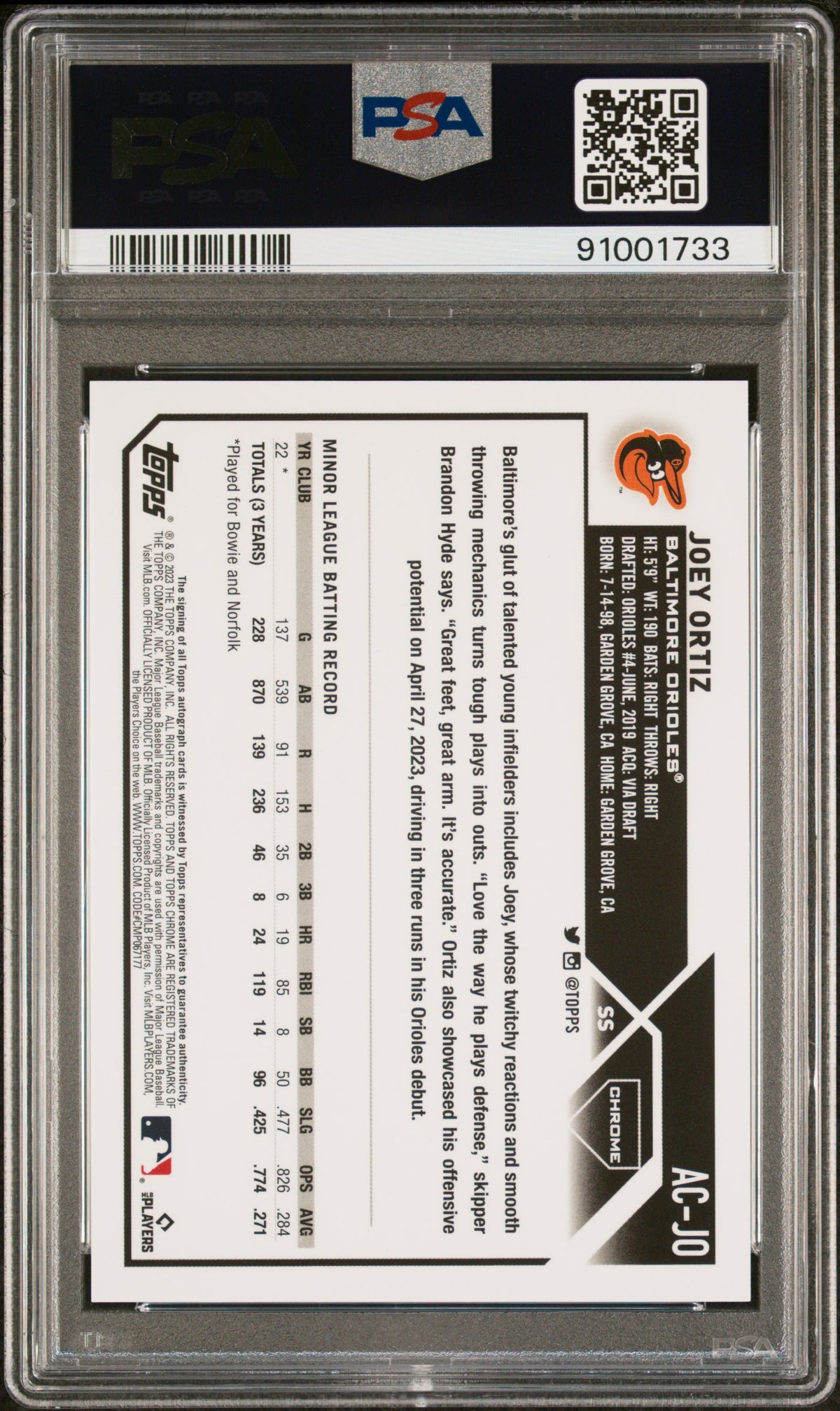 2023 Topps Chrome Update Joey Ortiz #AC-JO RC Auto PSA 9