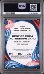 Step into the world of baseball with this exceptional sports card, featuring the talent of MLB player, Pablo Guerrero from the Texas Rangers. Manufactured by the esteemed Topps, under the Bowman's Best brand, this card is a true collector's gem from the year 2024.
