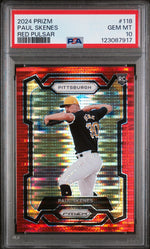Step into the sports arena with this stunning Paul Skenes baseball card! Manufactured by Panini under the esteemed 'Prizm' brand, this card is a piece of history from the year 2024. Carrying the card number 118, it belongs to the 'Red Pulsar' insert set - a rare and sought-after series among collectors and enthusiasts.