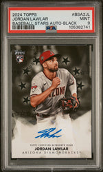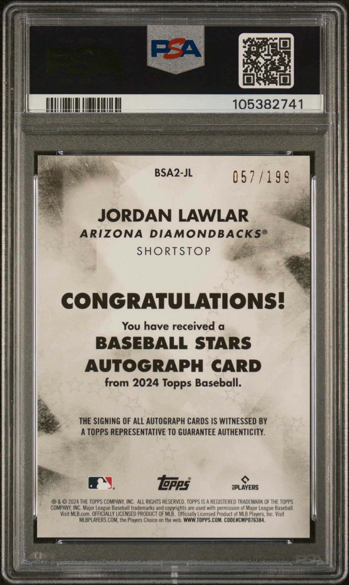 Feast your eyes on this exceptional 2024 Topps Baseball Stars card, featuring the promising talent, Jordan Lawlar. This card is a true gem for any serious collector. It is autographed by Lawlar himself, adding a personal touch that makes this card a piece of baseball history.