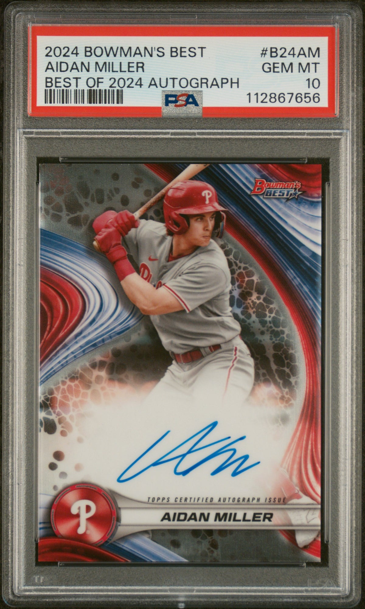 In conclusion, this 2024 Bowman's Best B24AM Aidan Miller PSA 10 card is a collector's dream. With its remarkable features and exceptional condition, it's a must-have for any dedicated fan of the MLB, the Philadelphia Phillies, or Aidan Miller himself. Don't miss the chance to add this gem to your collection and cherish it for years to come.