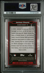 This card showcases Jackson Chourio, a rising star of the Milwaukee Brewers from MLB, in his rookie year, making it an essential possession for those who closely follow this promising player's journey. The 'Mercury' parallel of this card adds an additional layer of rarity and desirability, ensuring this card stands out in any collection.
