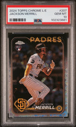 In summary, this 2024 Topps Chrome #207 Jackson Merrill PSA 10 rookie card is more than just a piece of cardboard. It's a nugget of history, a celebration of baseball talent, and a must-have for any serious collector. Add it to your collection, and enjoy the satisfaction of owning a piece of baseball history!