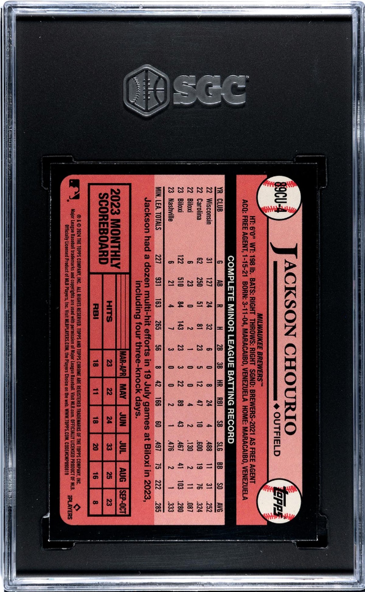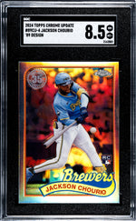 Immerse yourself in the world of sports collectibles with this stunning 2024 Topps Chrome Jackson Chourio baseball card. As part of Topps' highly sought-after Chrome Update set, this card (#89CU-4) is a true testament to the quality and craftsmanship that the brand is known for.