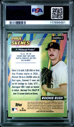 Immerse yourself in the world of baseball with this exceptional 2024 Topps Chrome Paul Skenes Rookie Card. This extraordinary piece of baseball memorabilia has been meticulously crafted by the esteemed manufacturer Topps, and belongs to the exclusive 'All-Etch Rookie Rush' set.