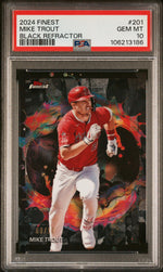 Bring your sports card collection to the next level with this exceptional 2024 Topps Finest #201 Mike Trout Black Refractor card. Crafted by the renowned manufacturer, Topps, and belonging to their premium 'Finest' brand, this card is a testament to their high-quality production and attention to detail.