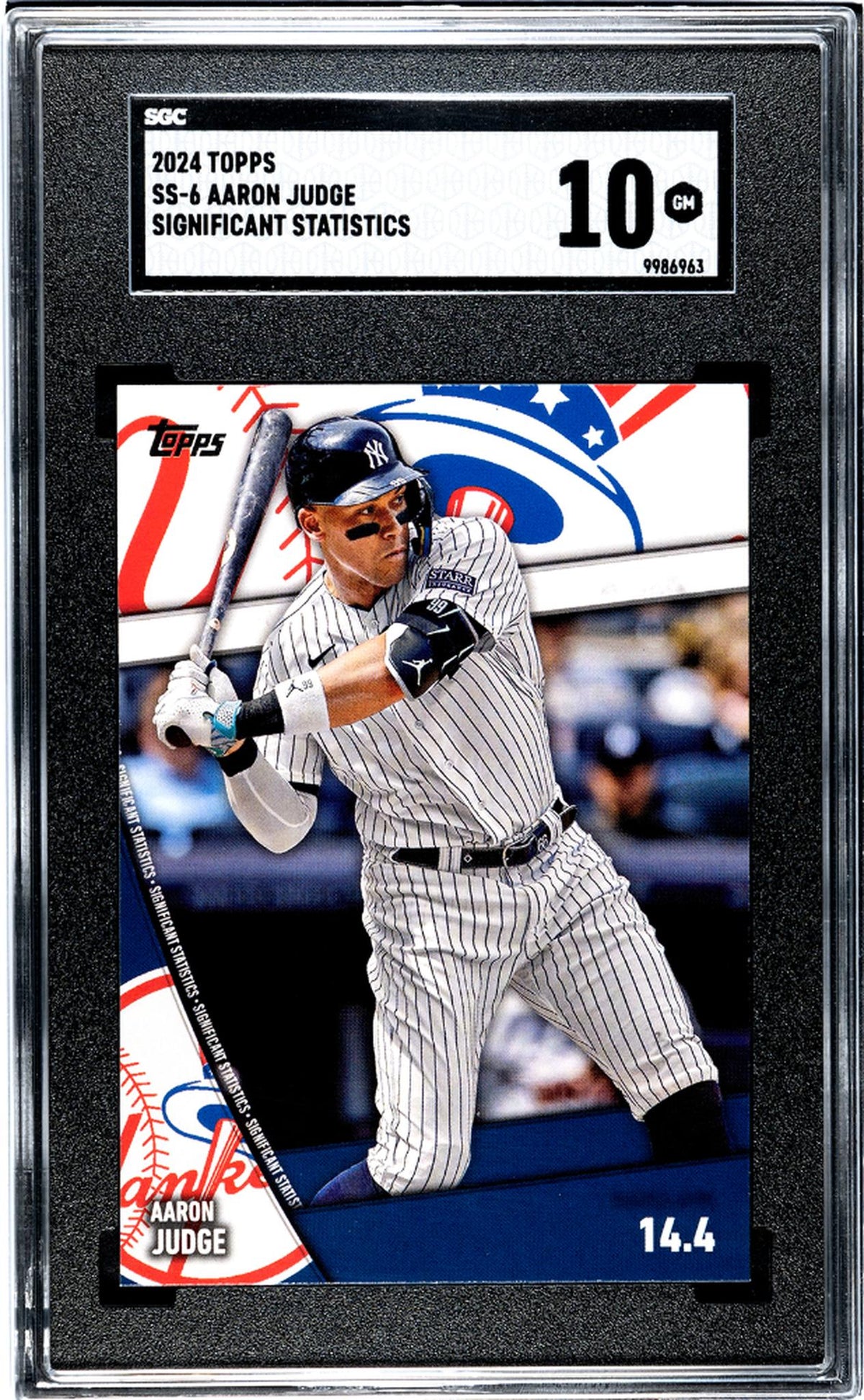 Step up to the plate and seize this opportunity to own an exceptional piece of baseball history! This 2024 Topps Significant Statistics card features the New York Yankees' powerhouse player, Aaron Judge. Manufactured by the renowned Topps brand, the card carries the distinguished SS-6 number within the collection.