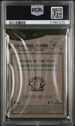 With key features like the Rookie of the Year Favorites, Orange Parallel, and an authentic autograph, this card is certainly a treasure to own. Although there's no included memorabilia, the autograph and the limited serial number make it an irresistible acquisition. This card will not only enhance your collection but will also be a constant reminder of the talent and hard work of Luisangel Acuna.