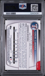 Indulge in the baseball fever with this extraordinary 2025 Bowman CPAYC Yeremi Cabrera card! Adorned with the signature of the prodigious Texas Rangers rookie, this card is a must-have for any serious collector. Expertly manufactured by the renowned Topps, under the Bowman brand, this card is a part of the exclusive 'Chrome Prospect Autograph' set. This unique piece of sports memorabilia is not just a card, it's a gem in mint condition, professionally graded 10 by PSA, the leading name in card grading. With this impeccable condition, it's almost as if Yeremi Cabrera himself handed this card to you! The card does not only commemorate Cabrera's thrilling rookie season but also his dynamic journey in the world of baseball. An autographed rookie card of a player of Cabrera's caliber is a rarity and a testament to his burgeoning career. The key features of this card include the Gem Mint condition, PSA graded 10, 2025 Bowman brand, Texas Rangers, autographed, and its status as a rookie card. This card personifies the spirit of the game and the essence of a true baseball memento, making it a superb addition to any sports card collection. This 2025 Bowman CPAYC Yeremi Cabrera card is more than just a piece of cardboard; it's a piece of baseball history in your hands. Add it to your collection and enjoy the satisfaction of owning a piece of the prodigious talent of Yeremi Cabrera.