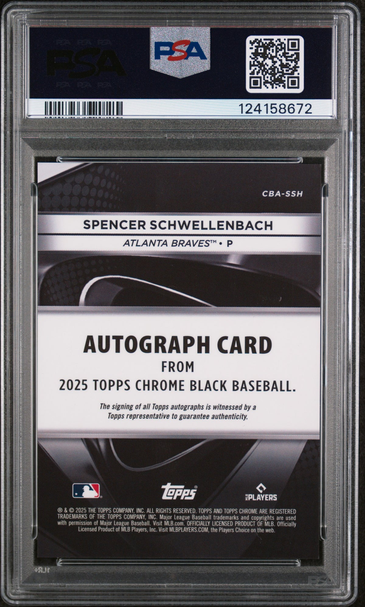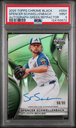 Experience the thrill of owning a piece of baseball history, an autographed, green refractor card of Spencer Schwellenbach from the 2025 Topps Chrome Black Set. Perfect for die-hard Atlanta Braves fans, rookie card collectors, or anyone who appreciates the beauty of sports cards. Add this treasure to your collection today and enjoy a piece of baseball heritage that will only grow more desirable with time.