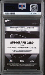 Feast your eyes on this absolute gem: the 2025 Topps Chrome #SSH Spencer Schwellenbach rookie card, a piece of baseball history that's not just a card, but a testament of a promising talent. Manufactured by the esteemed Topps, this card is a part of the sought-after 'Topps Chrome Black' set, revered for its premium quality and exceptional design.