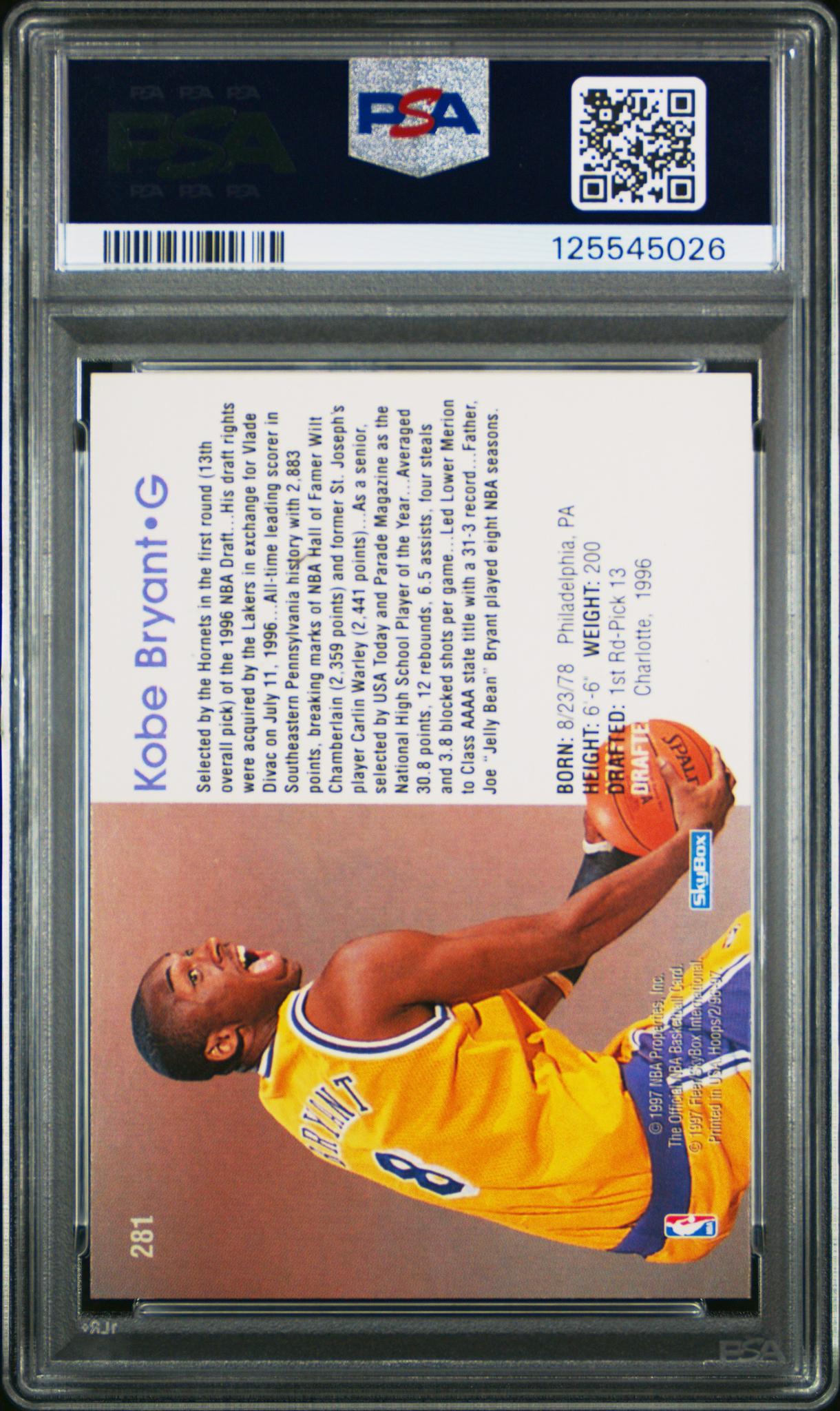 Embrace this chance to own a piece of NBA history. The 1996 Hoops #281 Kobe Bryant Rookie Card is not just a basketball card, it's a tangible piece of the legacy left behind by one of the greatest players to grace the game. This card delivers the perfect combination of nostalgia and excitement, a must-have for any serious sports card collector or die-hard Lakers fan.