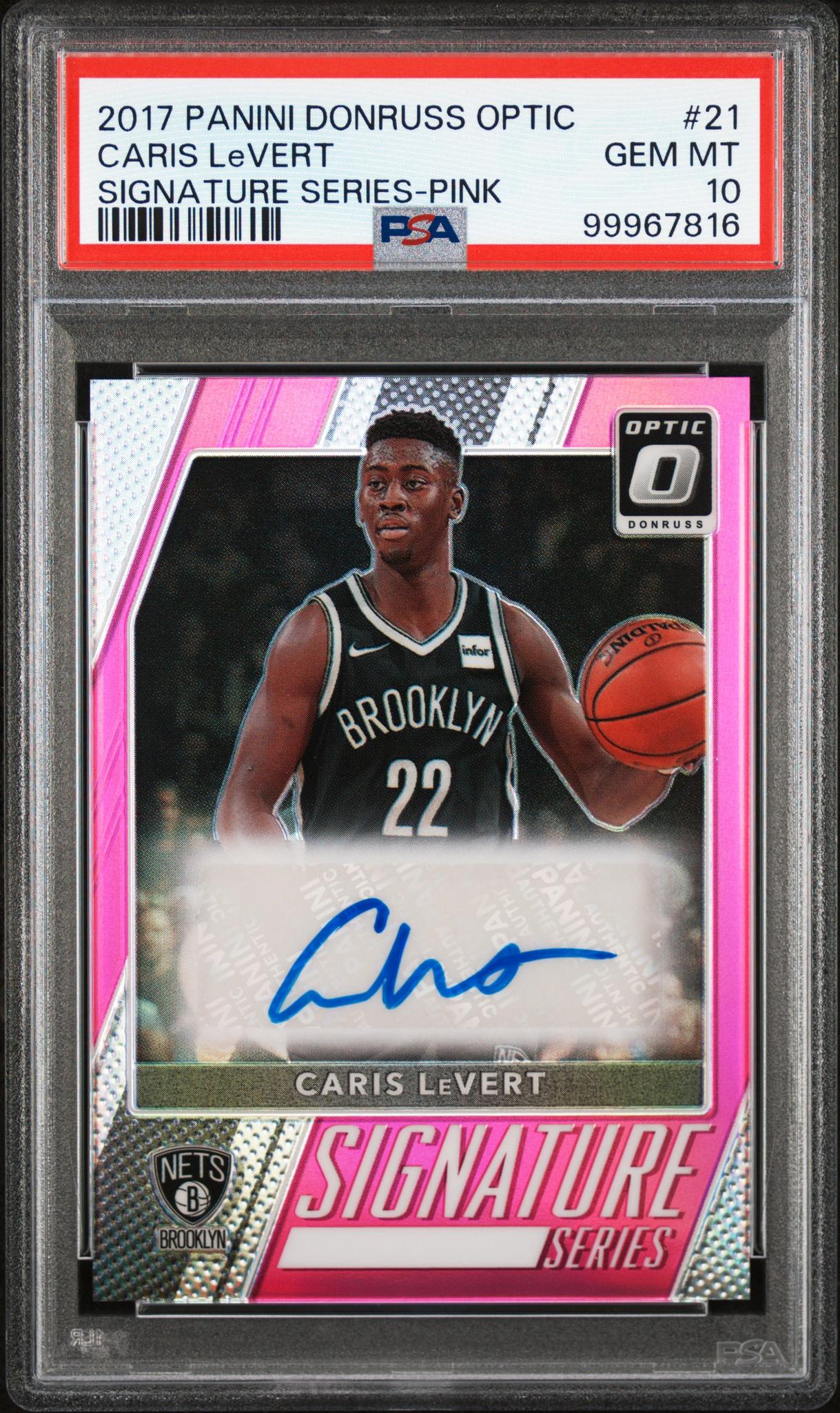 Introducing a rare and highly coveted item for any NBA fanatic or sports card collector - a 2017 Donruss Optic Signature Series Basketball Card featuring the dynamic talent, Caris LeVert of the Brooklyn Nets.