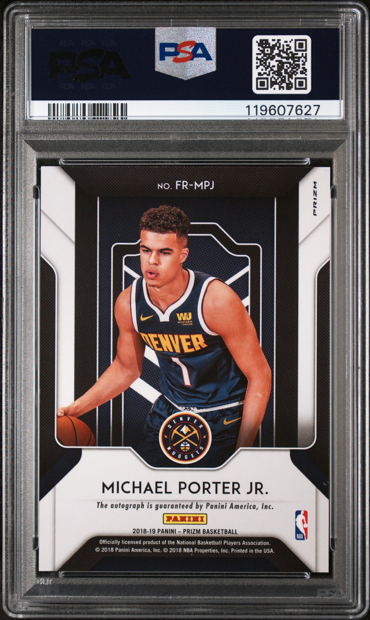 Own a piece of basketball history with this 2018 Prizm FR-MPJ Michael Porter Jr. card. It's more than just a card; it's a celebration of a player's potential and a testament to the exhilarating world of NBA. Add it to your collection today and let Michael Porter Jr.'s outstanding rookie year be a part of your sports card journey.