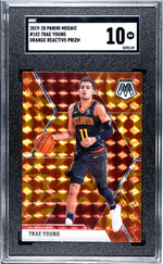Step into the court with this phenomenal 2019-20 Panini Mosaic card featuring the basketball sensation Trae Young of the Atlanta Hawks. This card is not just any card, but an 'Orange Reactive Prizm' variant from the acclaimed manufacturer Panini. The uniqueness of this card is further amplified by its parallel status - the 'Orange Reactive', making it a stand-out addition to any sports card collection.