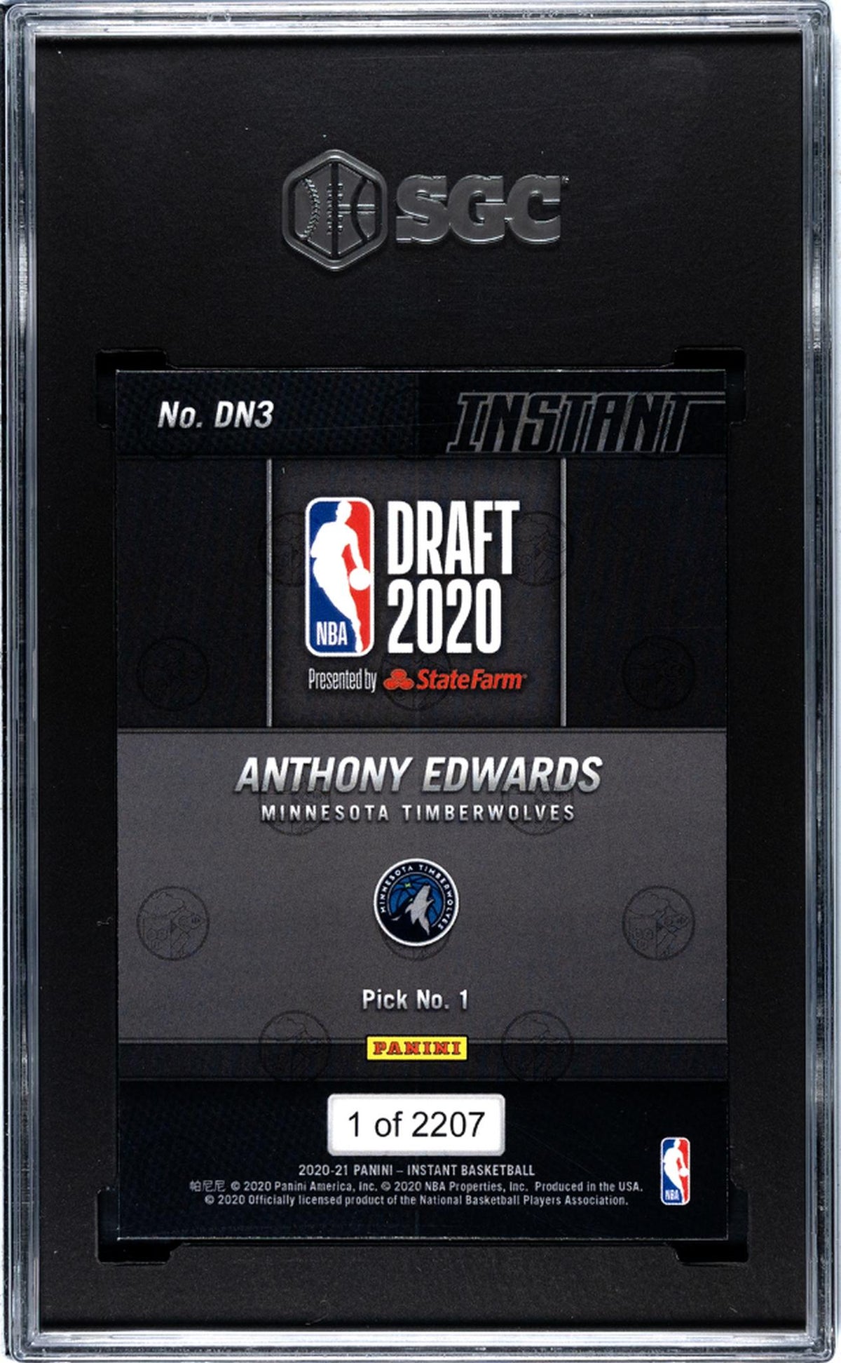 2020-21 Panini Instant Draft Night 2020 Anthony Edwards #DN3 RC /2207 SGC 9.5