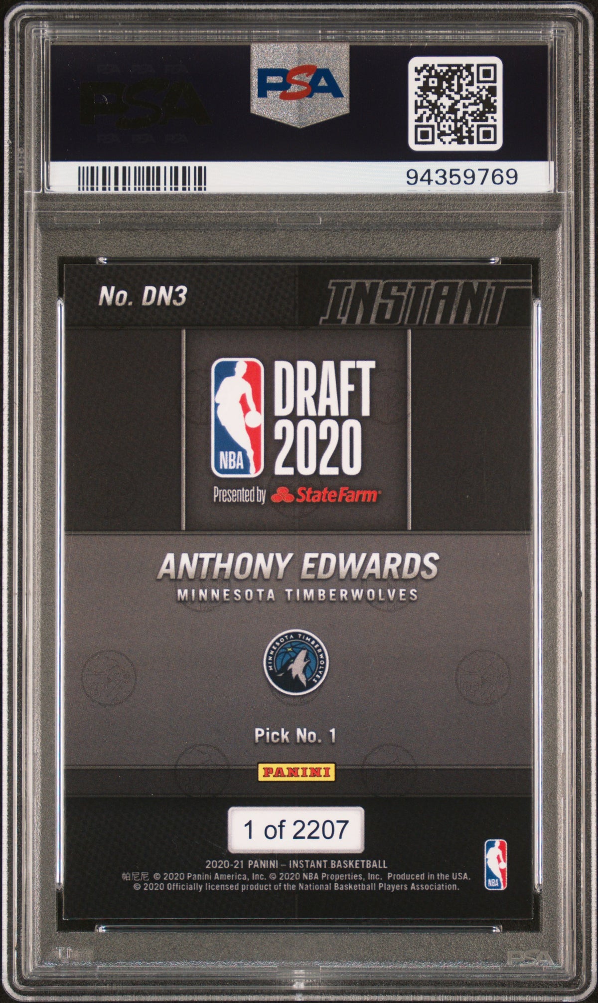 2020 Panini Instant Draft Night Anthony Edwards #DN3 /1 PSA 10